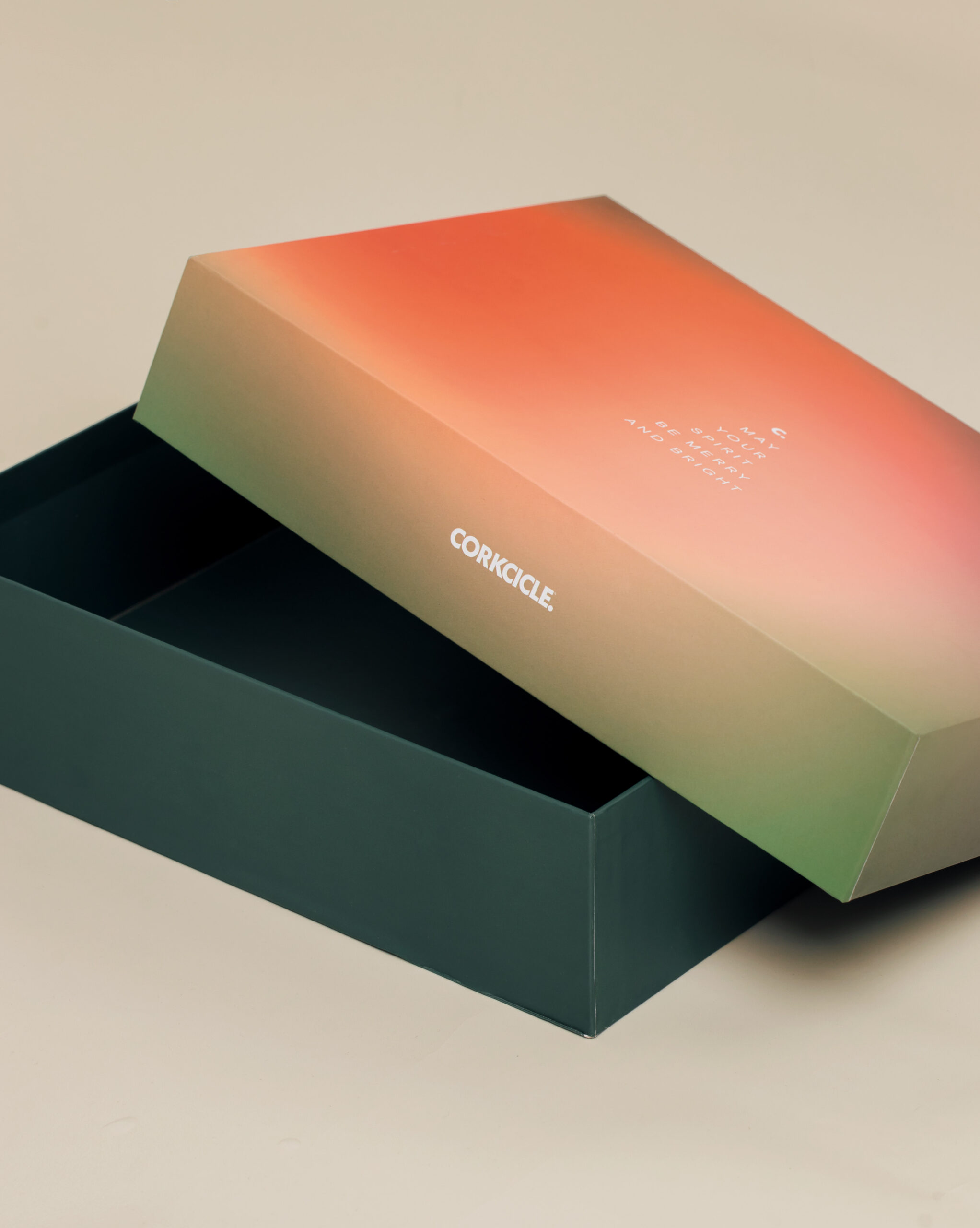 Corkcicle’s special Christmas packaging. Made with hard box to protect their high end tumblers.