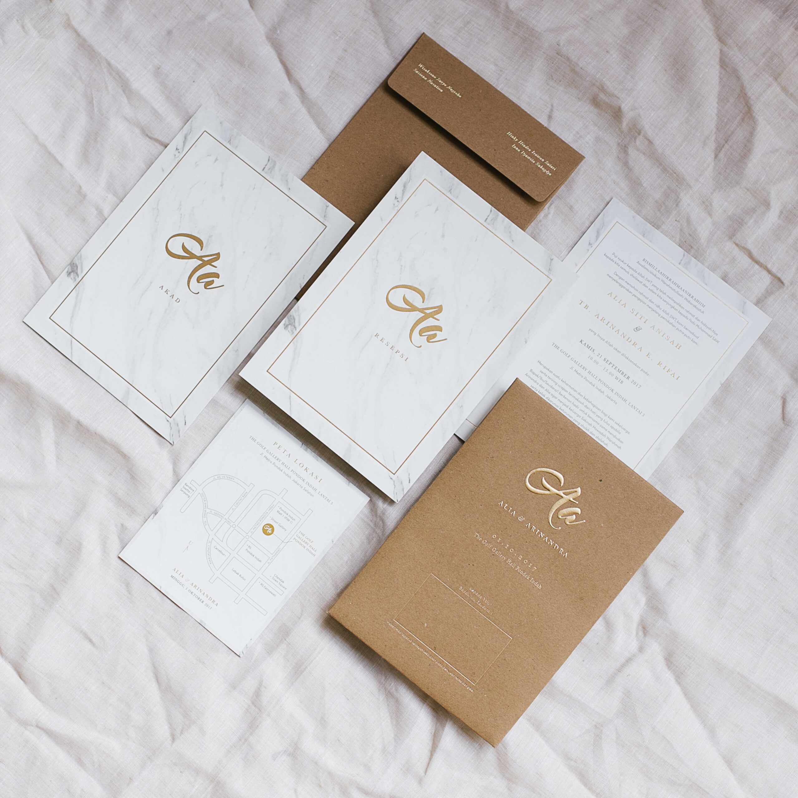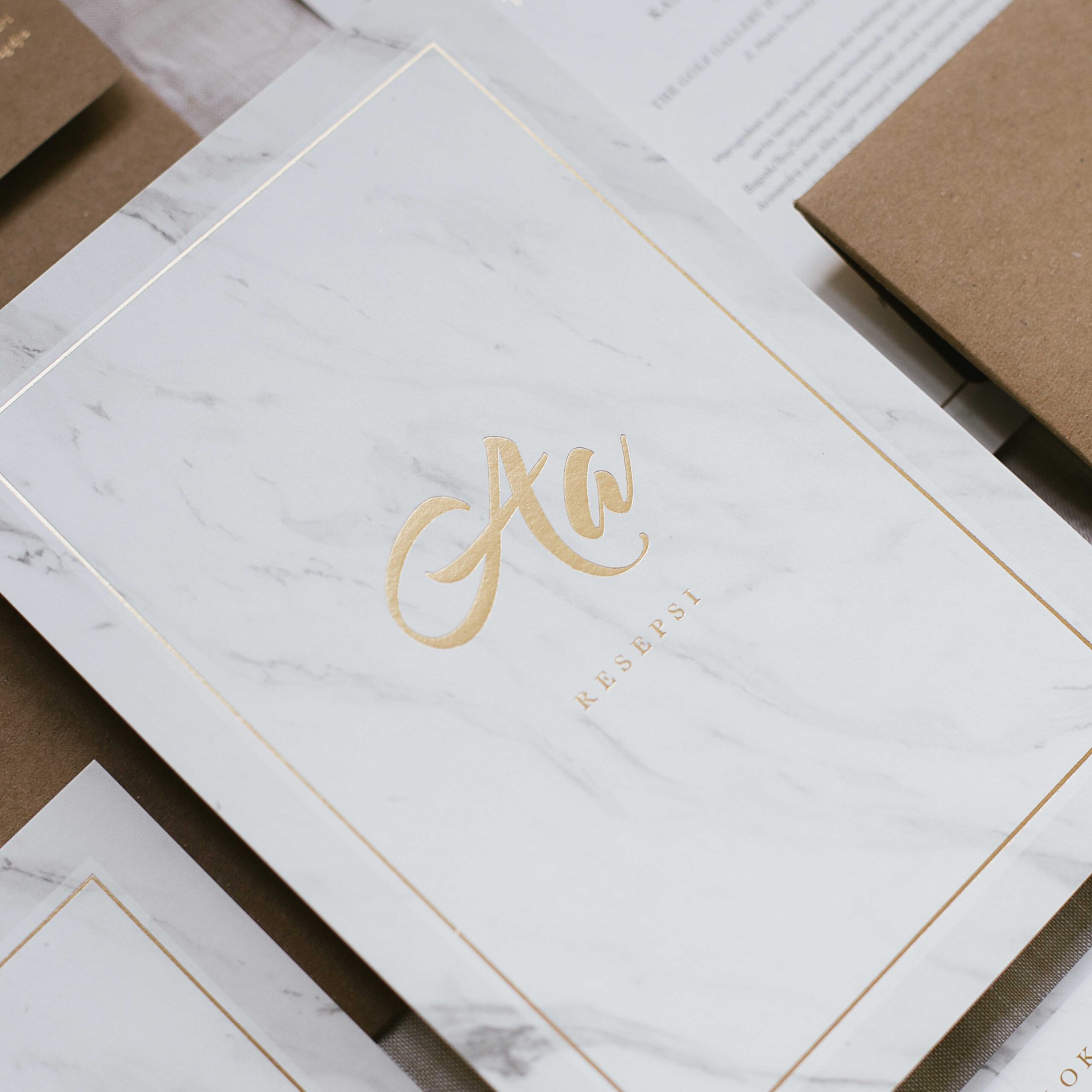 Earthy-marble themed wedding invitation.