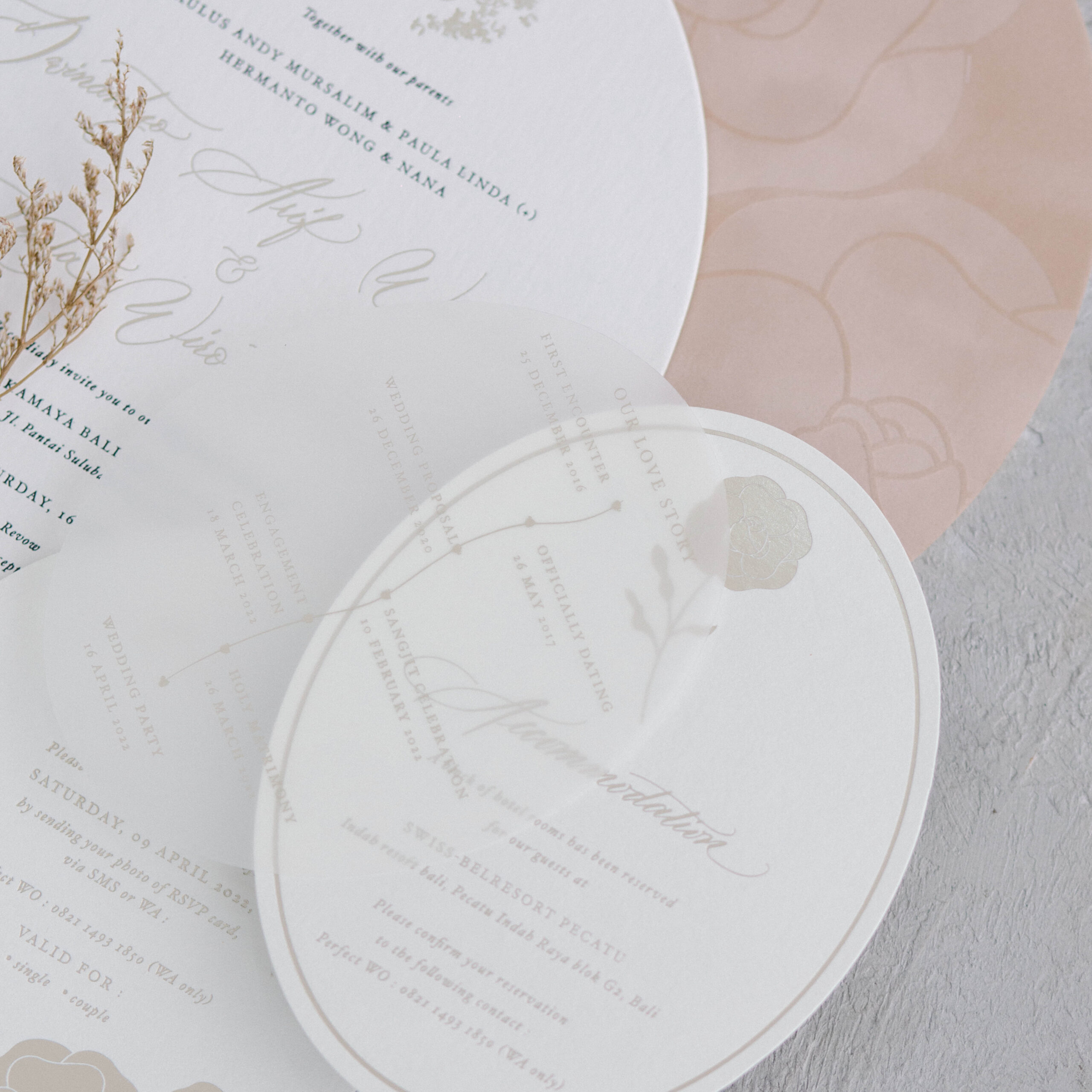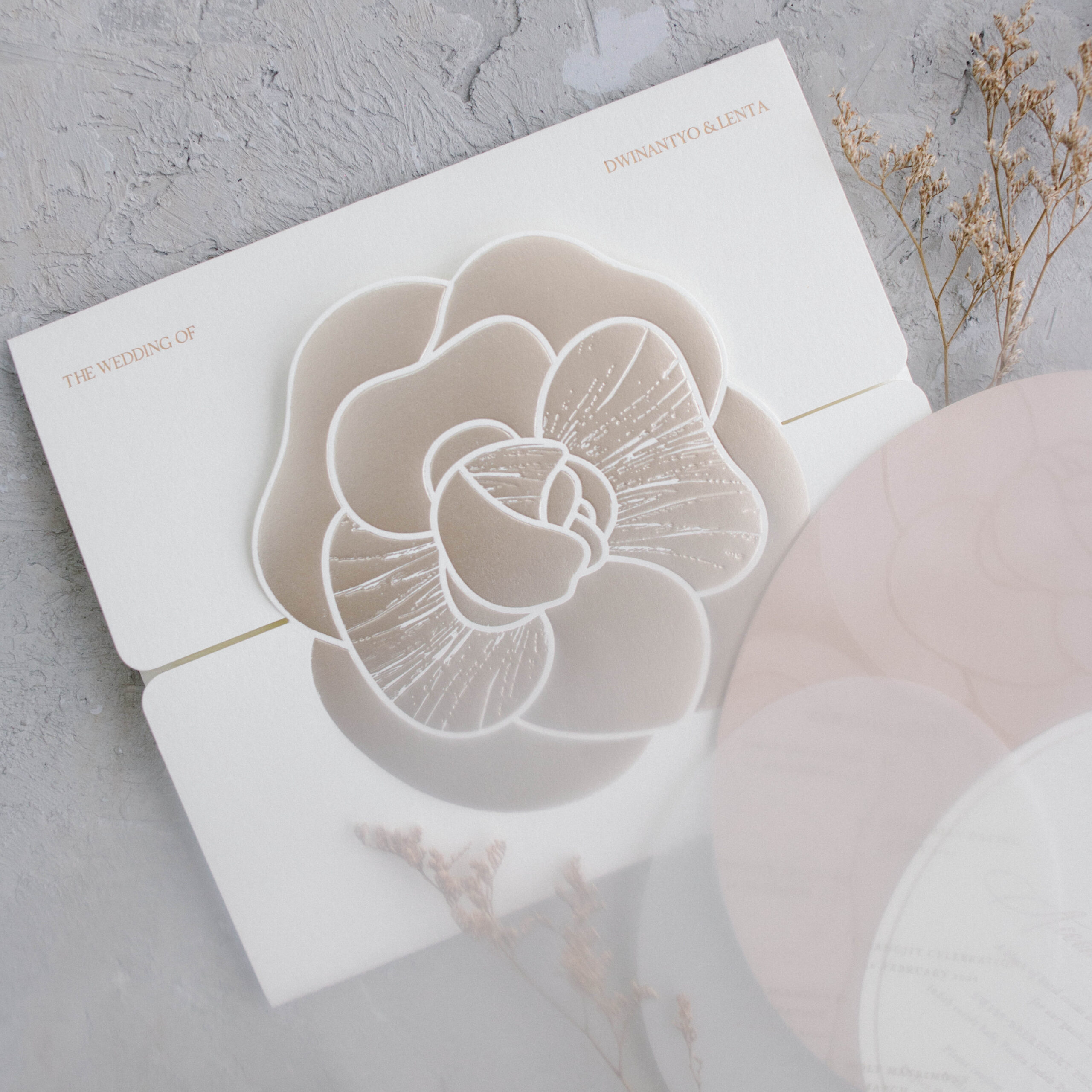 Second invitation set for Dwinatyo and Lenta, keeping a classic elegant look, made with suede that compliments the design.