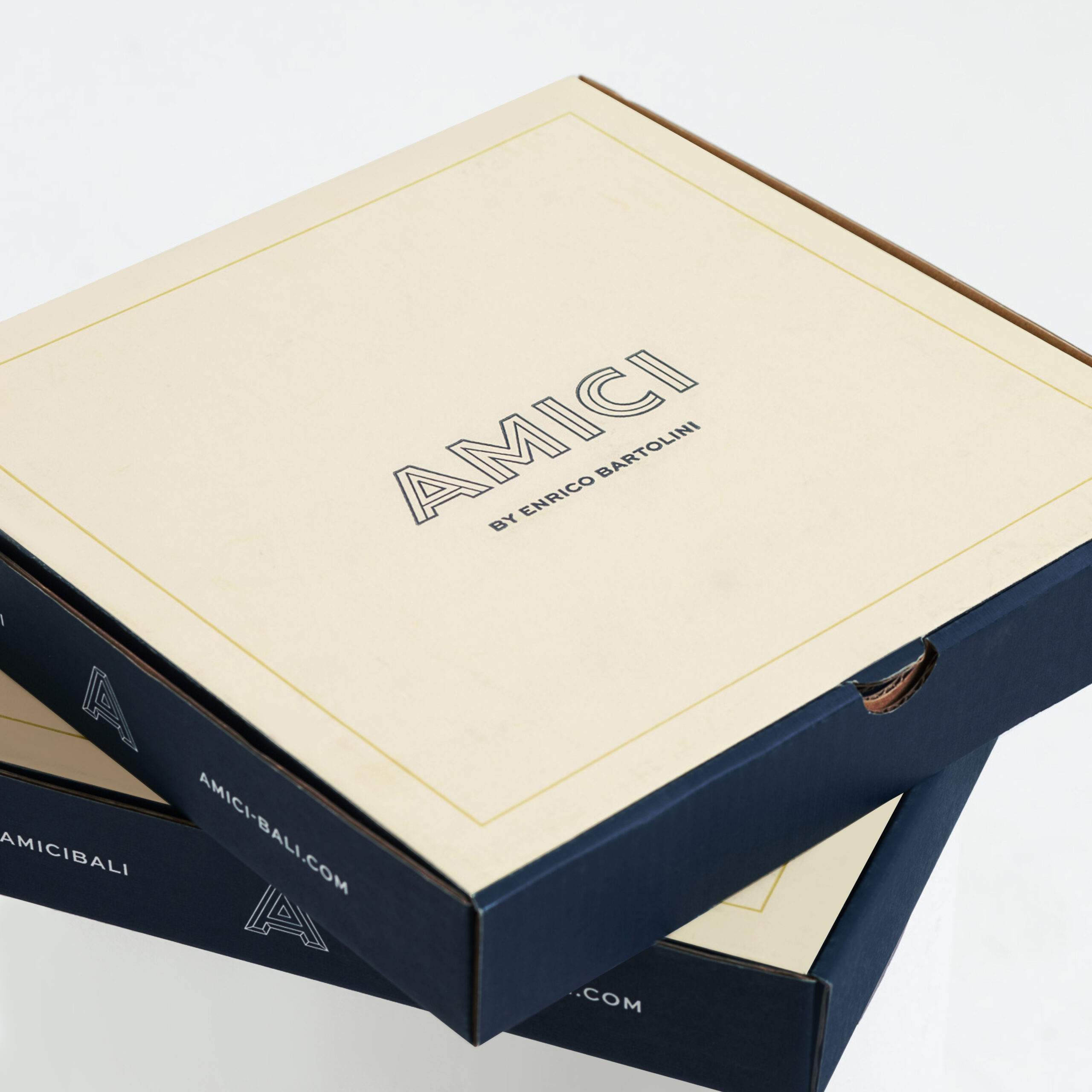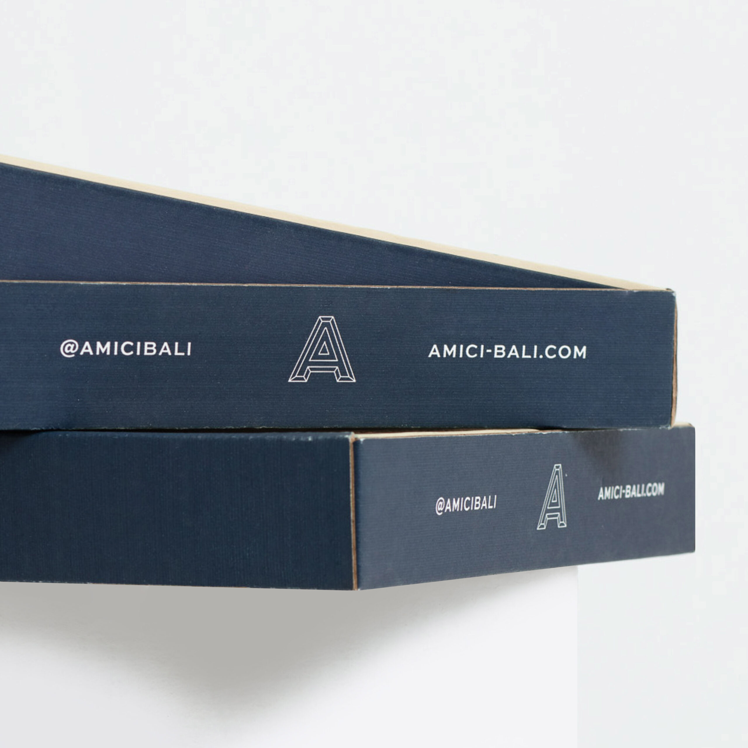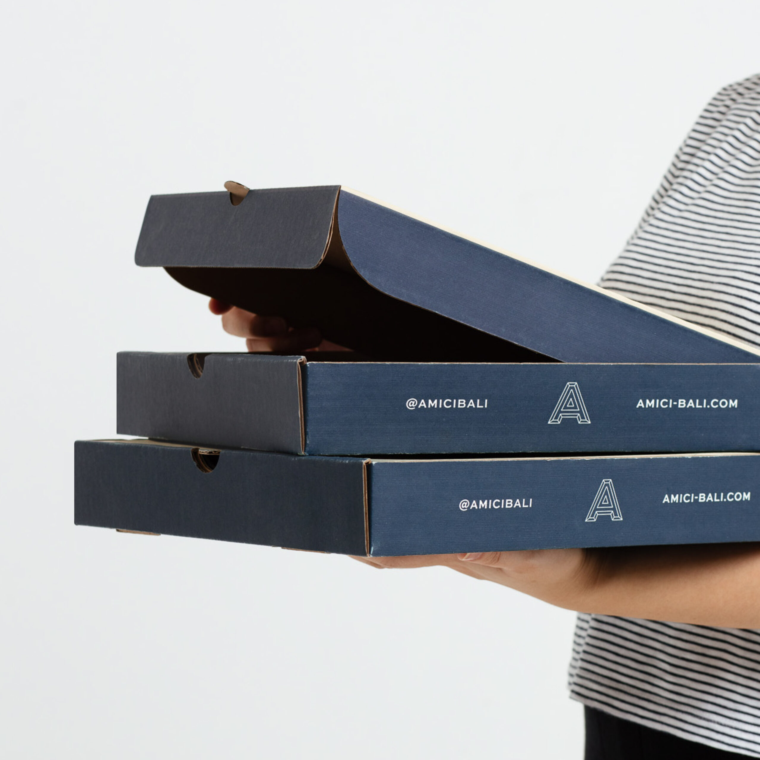 Corrugated box for AMICI’s pizzas, an italian restaurant based in Bali, Indonesia.
