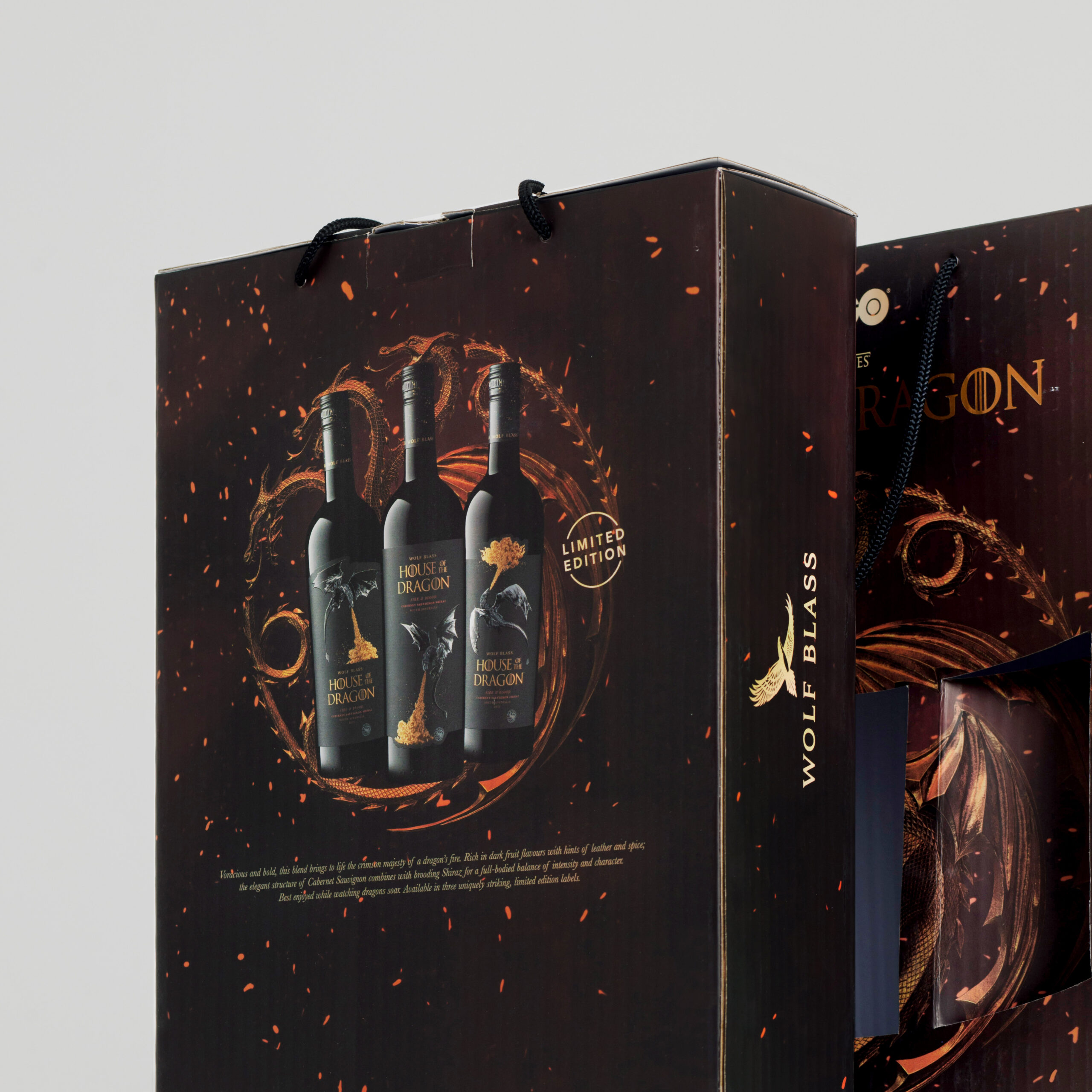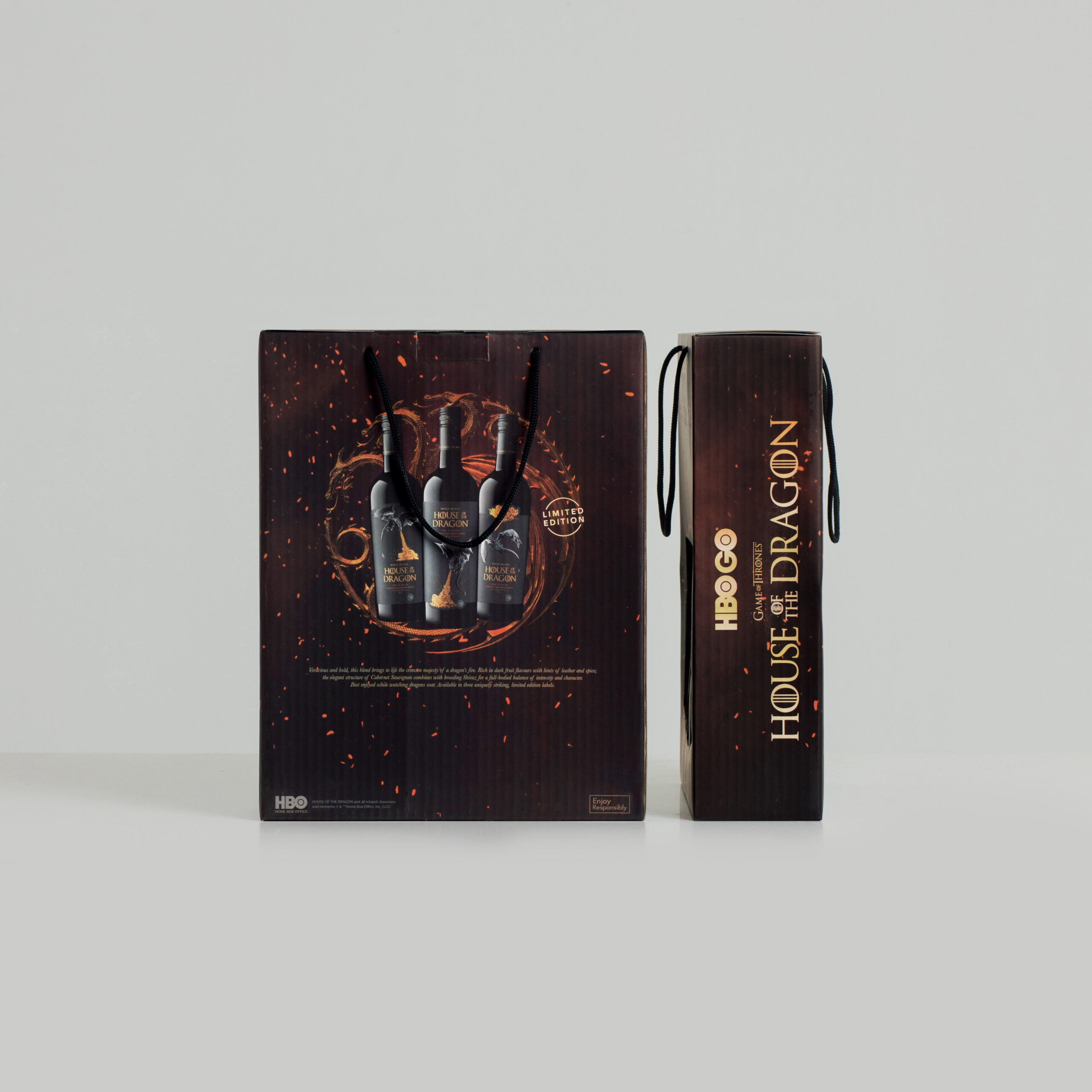 Corrugated packaging for House of Dragon’s HBO special release. Made sturdy for wine bottles.