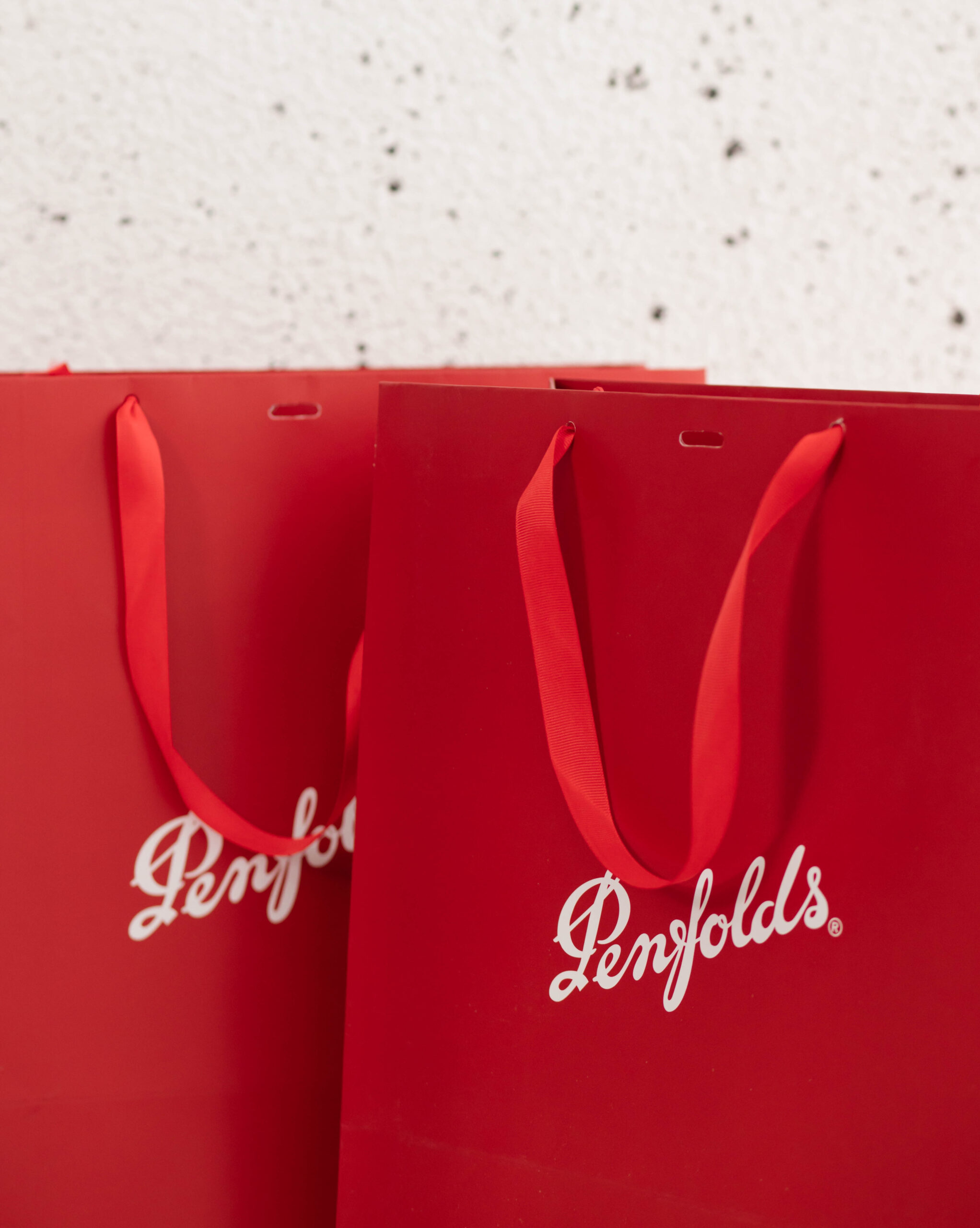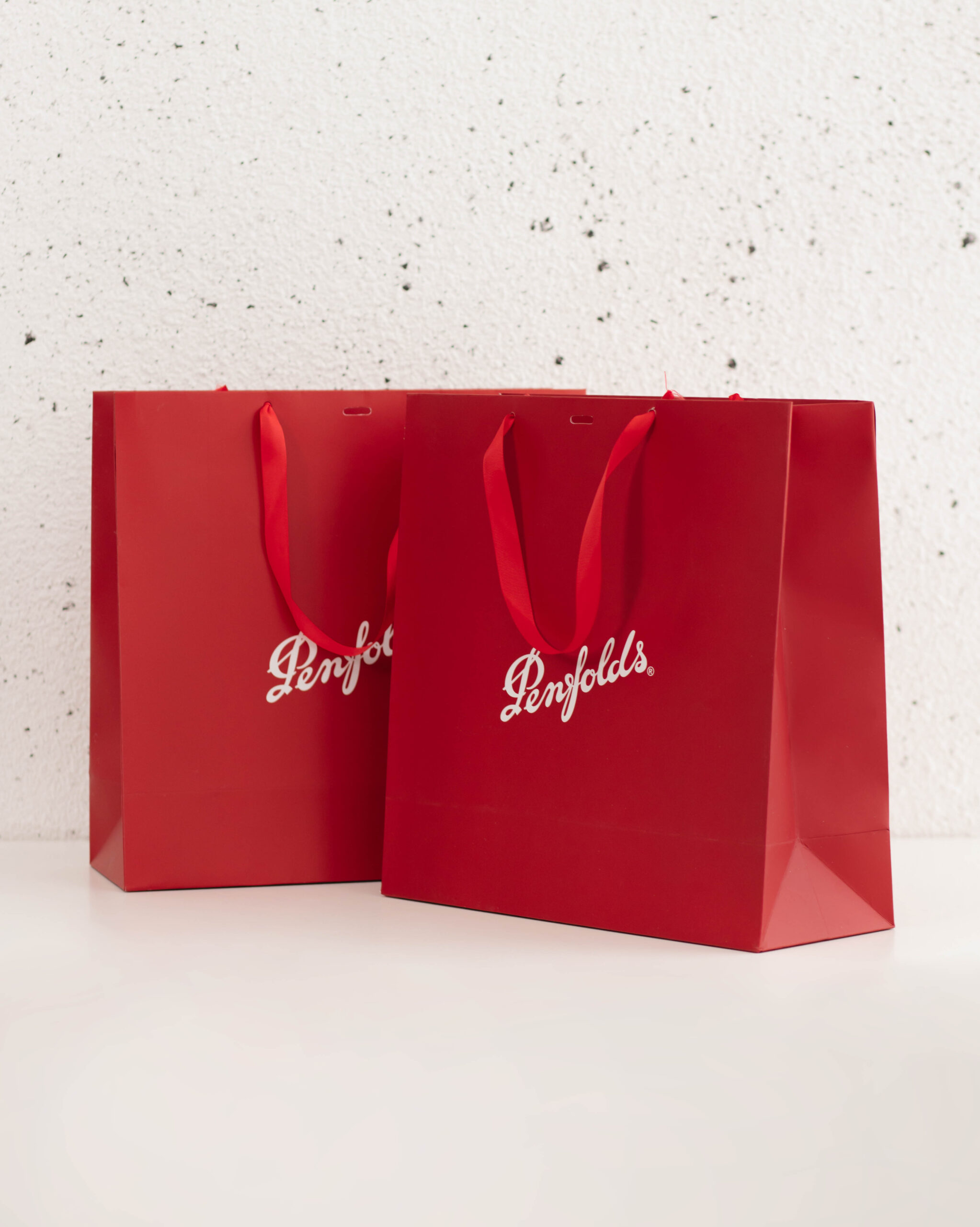 Bright red paperbag for Penfolds, also with bright red handles to match.